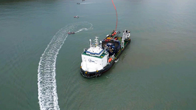 국내 해상풍력 사업에 투입된 CLV 포설선 ‘팔로스’/사진=대한전선 제공