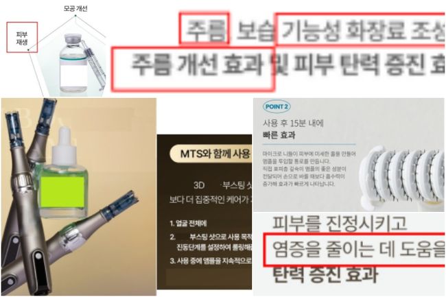 또한, 25건은 화장품의 효능·효과 범위를 넘는 광고였다. ‘MTS(마이크로니들 테라피 시스템)+화장품 병행 사용’, ‘진피층 침투’, ‘근막 전달’ 등 의료시술과 유사한 표현이 문제로 지적됐다. 일반 화장품을 기능성화장품처럼 광고하거나, 실제 기능성 심사 결과와 다른 내용으로 홍보한 경우도 5건 확인됐다.