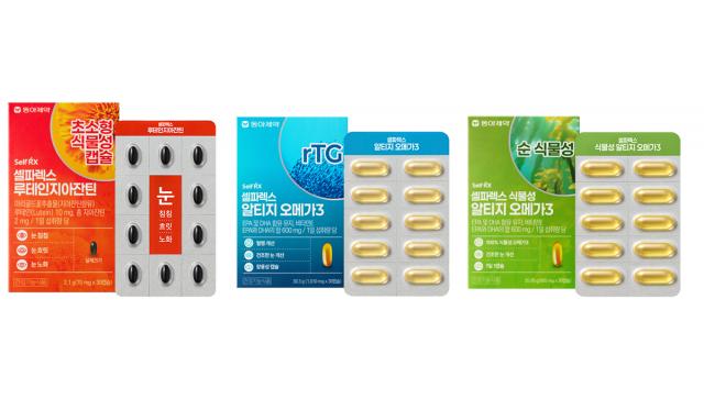 동아제약은 7일, 단일 성분에 초점을 맞춘 건강기능식품 ‘셀파렉스 베이직 라인’ 3종을 새롭게 출시했다고 밝혔다. 이번에 선보이는 제품은 ▲셀파렉스 루테인지아잔틴 ▲셀파렉스 알티지 오메가3 ▲셀파렉스 식물성 알티지 오메가3 등 총 3종이다.