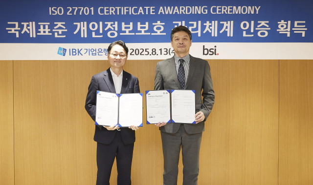 IBK기업은행이 국제표준 개인정보보호 관리체계 인증인 ‘ISO27701’을 획득하며 국내외 개인정보보호 규제 대응 역량을 한층 강화했다.