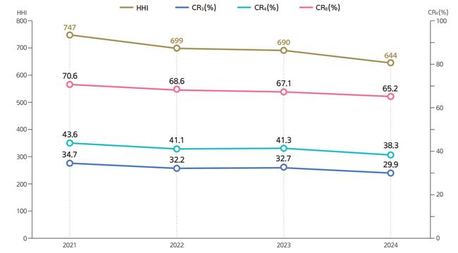 조사 결과, 2024년 허핀달-허쉬만 지수(HHI)는 644로, 2021년 747보다 낮아져 특정 매체계열의 독점적 영향력이 완화된 것으로 분석됐다.