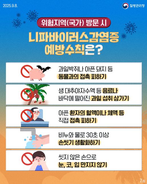 니파바이러스감염증 감염예방수칙/이미지=질병관리청 제공