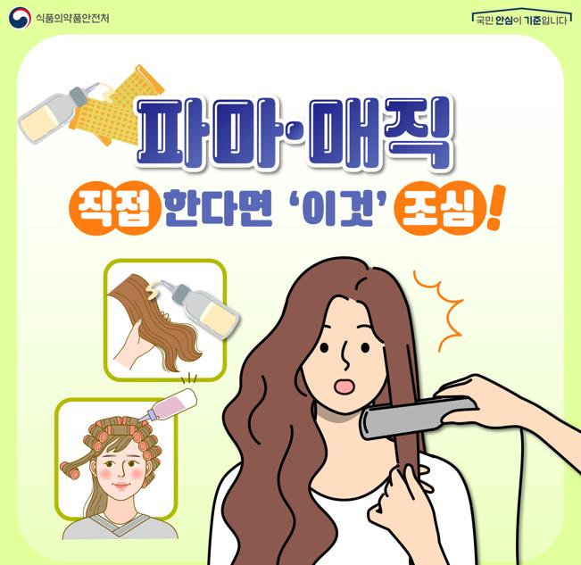 식품의약품안전처(식약처)는 퍼머넌트 웨이브(파마)와 헤어스트레이트너(매직) 제품을 집에서 전문가 도움 없이 사용할 경우 발생할 수 있는 부작용을 최소화하기 위해 소비자가 주의해야 할 사항을 안내했다.