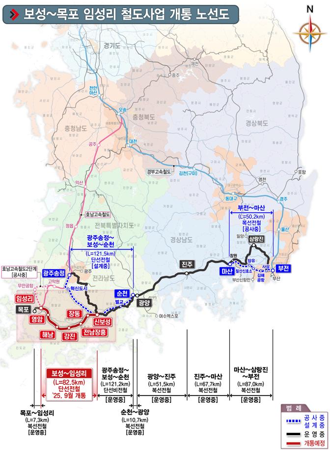 이번 ‘보성~목포 철도건설사업’은 신보성역에서 목포 임성리역까지 총 82.5km 구간을 신설하는 사업으로, 총사업비 1조 6459억 원이 투입됐다. 이에 따라 신보성역, 장동역, 전남장흥역, 강진역, 해남역, 영암역 등 총 6개 철도역이 새로 신설됐다.