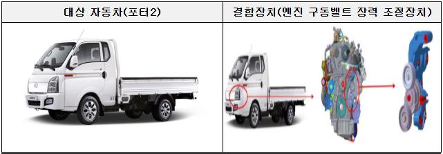 먼저 현대차 포터2, 6만934대는 엔진 구동벨트 장력 조절장치 설계 오류로 인해 구동벨트가 이탈할 경우 조향장치가 정상 작동하지 않을 가능성이 있어 9월 25일부터 리콜을 실시한다.