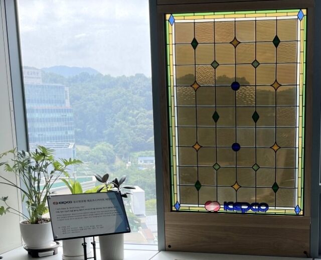또한 패널 후면에는 KEPCO 로고를 활용한 스테인드글라스 디자인을 적용해 건축물의 미관과 디자인적 완성도를 강화했다.