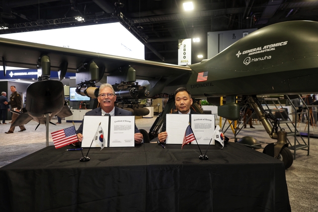 한화에어로스페이스는 현지 시각 10월 14일, 미국 워싱턴 D.C.에서 열린 미 육군협회(AUSA) 방산 전시회에서 GA-ASI와 ‘그레이 이글-STOL(GE-STOL)’ 공동개발 계약을 체결했다고 15일 밝혔다.