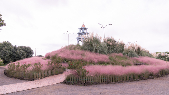 제주 서귀포시 표선면에 위치한 제주허브동산이 가을 정취를 만끽할 수 있는 ‘핑크뮬리 축제’를 진행 중이다. 출렁이는 분홍빛 핑크뮬리가 허브동산 곳곳을 물들이며 방문객들에게 낭만적인 풍경을 선사하고 있다.