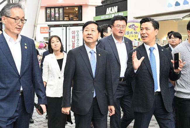 구윤철 부총리 겸 기획재정부 장관이 지난 9월 19일 오후 지역관광 활성화 및 추석맞이 골목상권 현장을 점검하고자 대전시 중구 으능정이 거리를 방문, 지역 골목상권을 둘러보고 있다/사진=IPC 제공