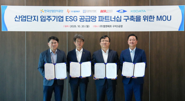 엘앤에프는 지난 20일 대구국가산업단지 구지3공장에서 한국산업단지공단, 협력사 쎄노텍(CENOTEC), ESG 전문기관 코데이터솔루션과 함께 ‘산업단지 입주기업 ESG 공급망 파트너십 구축을 위한 업무협약(MOU)’을 체결했다.