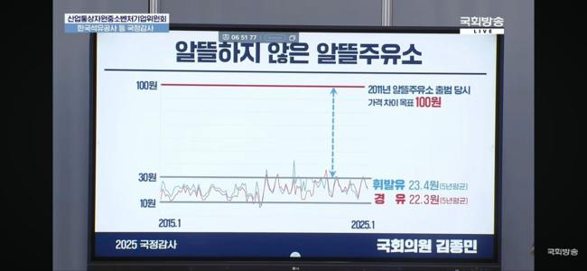 김 의원은 “2011년 출범 당시 알뜰주유소는 유가를 리터당 100원 낮추겠다고 약속했지만, 15년이 지난 지금 휘발유는 평균 23원, 경유는 22원 차이에 불과하다”며, “이름만 알뜰할 뿐 실속은 전혀 없다”고 말했다.