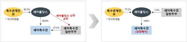 포괄적 주식교환 전·후 지분구조 변화/자료제공=세아홀딩스