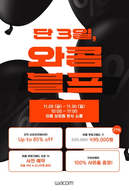 와콤이 오는 28일부터 30일까지 서울 상암동 본사 쇼룸에서 ‘2025 와콤 블랙 프라이데이’를 개최한다.