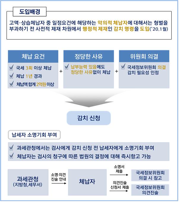 고액・상습체납자 감치 신청 대상 및 절차/자료제공=국세청