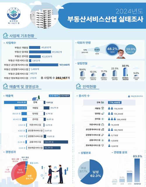 2024년 부동산서비스산업 실태조사 결과 발표 - 사업체·매출·종사자 수 모두 감소