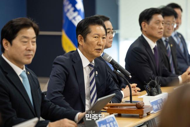 정청래 당대표가 9일 경남 창원시에 위치한 경남도당에서 민생 현장최고위원회의를 주재하고 있다.