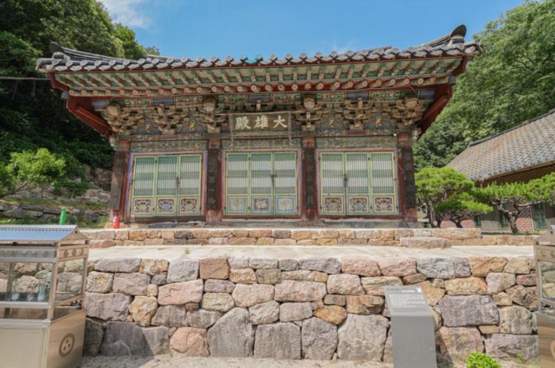 대웅전은 정면 3칸, 측면 3칸 규모로, 지붕은 맞배지붕 형식이다. 건물 전면은 기둥 상부뿐 아니라 기둥과 기둥 사이에도 공포를 배치한 다포계 공포로 구성됐으며, 후면은 기둥 위에 돌출된 부재와 끝부분을 날개 형태로 조각한 부재(익공)를 함께 사용하는 익공계 공포로 이뤄졌다.