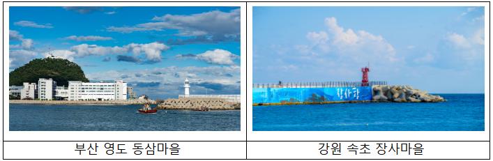이달의 수산물로는 참돔과 김이, 어촌 여행지로는 부산 영도 동삼마을과 강원 속초 장사마을이 이름을 올렸다. 해양생물은 큰돌고래, 등대는 전남 진도 서망항 북방파제등대, 무인도서는 경남 남해군의 대마도(큰말섬)가 선정됐다.