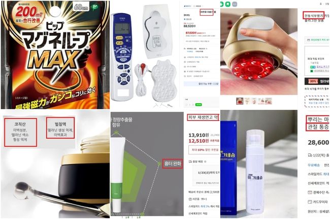 점검 대상은 의료용자기발생기, 개인용저주파자극기, 전동식 부항기 등 의료기기와 미백·주름개선 기능성화장품, 근육통 완화 표방 제품, 구중청량제와 치아미백제 등이다.