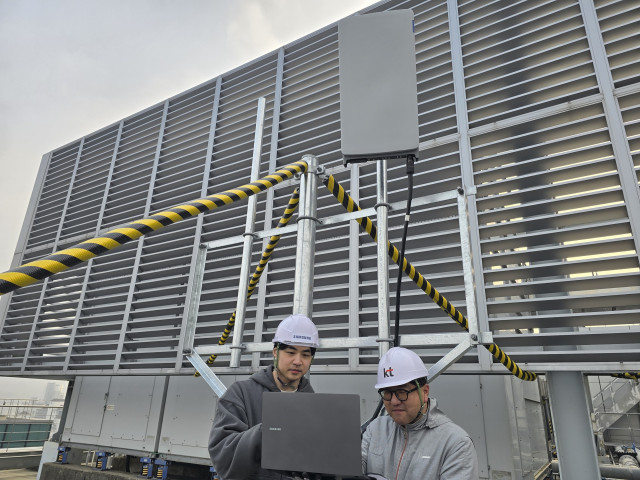 삼성전자 차세대통신연구센터와 KT 연구진이 서울 우면동 소재 삼성전자 서울R&D캠퍼스에서 초고집적 다중 안테나 기술을 검증하고 있다/사진=삼성전자 제공
