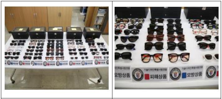 수사에 따르면 K씨는 관련 업계 경력이 없는 상태에서 2019년 아이웨어 브랜드를 설립한 뒤 별도의 디자인 개발 인력 없이 국내 유명 아이웨어 브랜드 B사의 선글라스 등 인기 제품을 촬영해 해외 제조업체에 전달하는 방식으로 모방 제품을 제작한 것으로 조사됐다. K씨는 이러한 방식으로 생산된 모방 상품 51종, 약 32만1000여 점(판매가 기준 약 123억 원 상당)을 2023년 2월부터 2025년 6월까지 판매한 혐의를 받고 있다. 또 2023년 8월부터 2025년 6월까지 모방 상품 44종, 약 41만3000여 점을 해외에서 수입한 것으로 확인됐다.