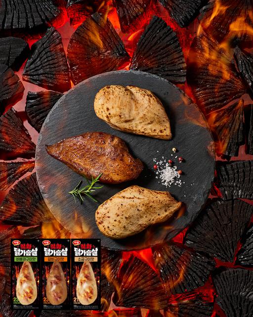 ‘직화 닭가슴살’은 총 3단계 공법을 적용해 완성됐다. 먼저 신선한 닭가슴살을 특제 양념에 12시간 동안 냉장 숙성해 풍미를 깊게 배도록 했으며, 이후 오븐에서 두 차례 익히는 초벌 과정을 통해 수분 손실을 최소화하고 부드러운 식감을 살렸다. 마지막으로 고온의 직화로 마무리해 특유의 진한 숯불향을 구현했다. 이는 단순히 그릴 자국이나 향을 더한 제품과 차별화되는 요소로, 실제 직화구이의 풍미를 강조한 것이 핵심이다.