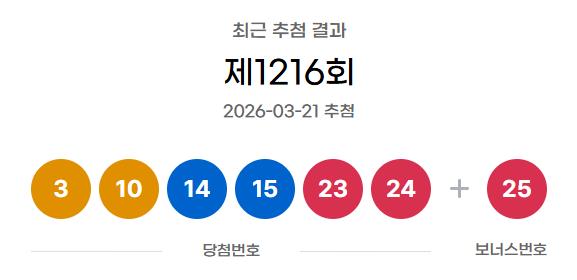 로또복권 운영사 동행복권이 3월 21일 추첨한 제1216회 로또복권에서 당첨번호 6개를 맞힌 1등 당첨은 총 14게임으로 집계됐다.