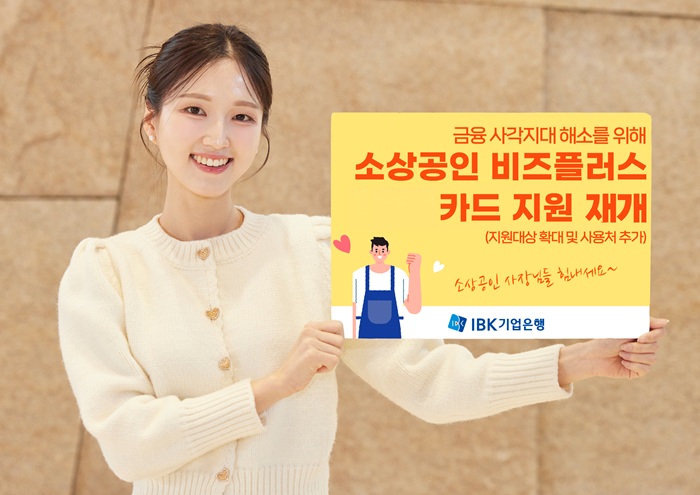 IBK기업은행이 소상공인의 경영 부담 완화를 위해 ‘소상공인 비즈플러스 카드’ 발급을 재개한다.